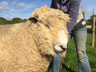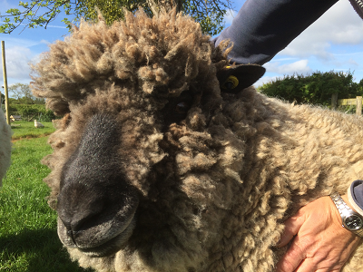 Sam and ShSamSherlockerlock have been our stock rams for the last 2 years, so they need to move on as their lambs from 2013 will come into the breeding flock this year. We’ll be sad to see them go as not only have they given us some good lambs,  they’re bidable and  laid back. You can see what I mean in the photos, when they aren’t with the girls they graze in the orchard with the hens. The photos were taken in late May before they were sheared a couple of weeks later.