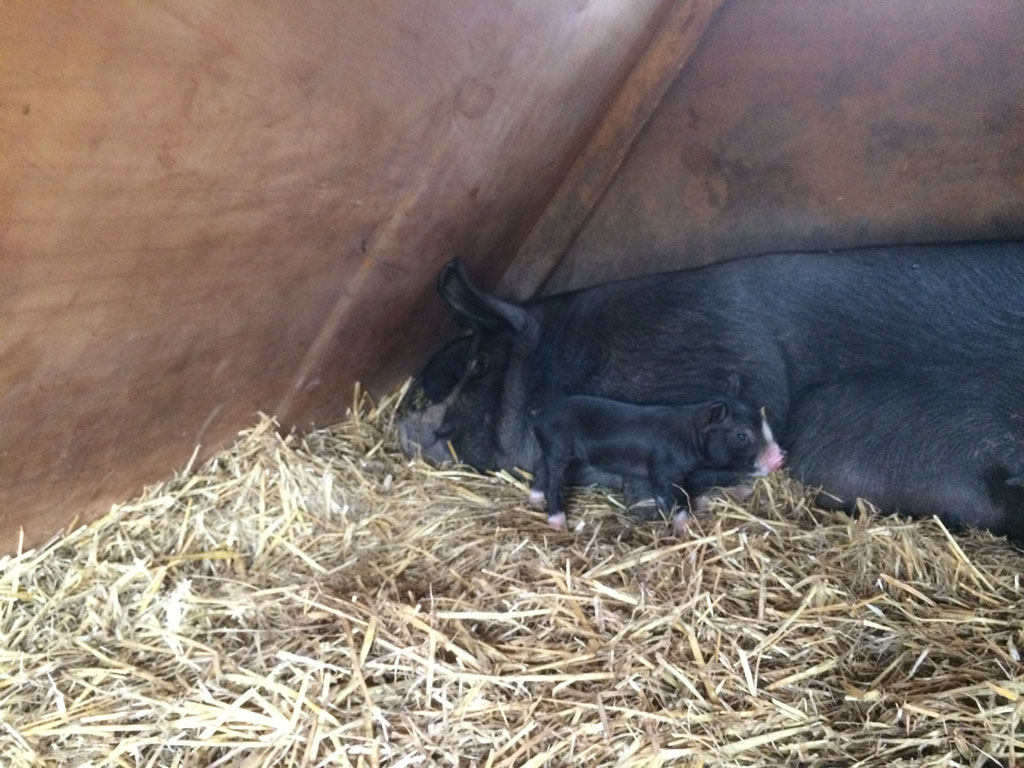 Sultana, had 9 piglets yesterday. All fit and well. Two ventured out of the ark somehow and I found them under huddled up together underneath it. It’s Sultana’s first litter and she’s chilled about the whole event.